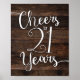 Rustic Chic CHEERS PARA 21 ANOS Sinal Impressão