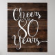 Rustic Chic CHEERS PARA 80 ANOS Sinal Impressão