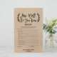 Este jogo rústico de "como você conhece a noiva" é perfeito para um chá de panela de tendências. A frente do cartão de jogo apresenta "como você conhece bem a noiva", e a parte de trás do cartão contém "o que há na bolsa". A design apresenta uma tipografia divertida, escrita à mão, com deliciosos laços e espirais cercados por uma simples coroa de oliveiras. Personalize a parte frontal da placa com o nome da noiva e a data do chá de panela. Por favor, observe que isto não está impresso em papel kraft real. É um gráfico de alta qualidade feito para parecer papel kraft.