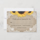 Cartões RSVP de casamento rústicos personalizados com girassóis, burlap, lace e madeira de celeiro. Design de cartão perfeito para complementar seu país rústico, ou festa de casamento de celeiro inspirada pelas flores de girassol. Itens correspondentes disponíveis para complementar estes cartões RSVP de casamento rápido.