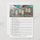 O cartão de jogo de chá de panela russo combina com a nossa coleção de Chás de panela e Casamento de Mason. Este jogo rústico do país e apresenta um fundo de tábua marrom com flores azul e roxa turquesa no topo com frascos-pedras pendurados neles. as palavras "Amor" podem ser encontradas dentro nos potes pedonais. A frente mostra como você conhece bem a noiva. Para personalização adicional, sinta-se à vontade para entrar em contato comigo! Mostrado é azul-turquesa e roxo.