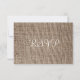 Este convite de casamento russo RSVP apresenta um fundo de burlap impresso com papel de padrão de rolagem elegante vintage e um arco de fio impresso no lado, todos apenas designs impressos. Não é um tecido de burlap real, apenas um design impresso. Estes cartões de resposta de impressão de arromba são perfeitos para um casamento estilo country. Completamente personalizável com seus próprios detalhes. Aqui está o conjunto de convites personalizados para casamento no país: