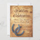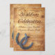 Este convite para o casamento tem duas ferraduras entrelaçadas no canto inferior. O texto da "Celebração de Casamento" faz parte da design de fundo. Contacte-me se precisar de uma redação alternativa. Estes são excelentes para casamentos e casamentos de celeiro no oeste do país. convites para casamentos rústicos, convites para casamentos de campo, ferraduras ferraduras, convites para casamentos no oeste do país, ferraduras duplas, ferraduras cruzadas, casamentos de cowboy, convites para casamentos de madeira em celeiro, madeira rústica, madeira velha, antiguidade vintage em apuros