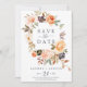 Esta floral rústica salva que o cartão de data de lançamento é perfeito para um casamento outono. O elegante design de tons de terra apresenta flores de aquarela rústicas em terracota, cobre, laranja queimado, pêssego, rosa esbranquiçado e branco creme com estilo vintage boho.