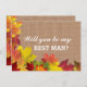 Você será meu MELHOR HOMEM? Design único para um tema de casamento outono com uma bela folhagem de outono num fundo de burlap. Use a ferramenta Personalizar para adicionar suas informações. Para mais visitas à papelaria de casamento, por favor, minha coleção de casamentos Rustic Fall Deixa Burlap. Precisa de ajuda? Clique no botão Perguntar a este Designer abaixo.