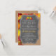 Design com tema romântico, país, casamento outono com estilo tipográfico de folha de ouro moderno, folhas coloridas de queda num belo ornamento de quadro-negro, tudo sobre um fundo de madeira lavada. Use a ferramenta Personalizar para adicionar suas informações. Você pode mudar a forma do convite.Veja, por favor, outros itens que correspondem a este design na Coleção de Casamentos de Calkboard/Madeira no meu País.