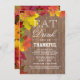 Design único para o Partido de Ação de Graças com uma bela folhagem de outono num fundo de celeiro de madeira antigo. Use a ferramenta Personalizar para adicionar suas informações. Para mais visitas de papelaria, por favor, minha coleção de festa de Ação de Graças. Precisa de ajuda? Clique no botão Perguntar a este Designer abaixo.