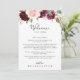 Esta risada carta de boas-vindas florais e botânicas é perfeita para um casamento moderno. A design apresenta flores e folhagem lindas e coloridas desenhadas à mão, elegantemente organizadas em buquês atraentes. Personalize a frente com uma mensagem de boas-vindas para seus convidados e seus nomes. Personalize as costas com a programação de eventos e outras informações úteis.