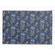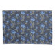 Pattern with blue flowers, dots and green leaves on dark background. Rustic folk art floral texture
