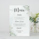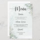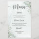 Your guests will adore this simple, modern, and elegant menu template, perfect for a romantic garden botanical wedding. Featuring a sage green eucalyptus design on a watercolour background, you can customise it with your own information to set the decor for your special day. Enhance your wedding with this menu template that captures the essence of a botanical celebration.
