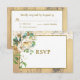 Um romântico convite de casamento RSVP design apresenta um fundo de pinheiro com rosas de aquarela e sotaque de rendas. A caixa de texto do pinho apoiado centrada em branco para todas as suas informações de resposta tem tipografia clara em castanho. As fontes e a cor da borda podem ser personalizadas na ferramenta design.