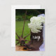 Personalize o encantador cartão de resposta de casamento Rustic Hydrangea e Cowboy Boots Country com sua data de resposta rsvp de casamento específico. Estes cartões de casamento rústicos, casuais, mas clássicos, apresentam uma fotografia floral acinzentada de botas de cowboy ocidentais de couro castanho, um buquê de flores brancas de hydrangea e um véu branco de brasa em madeira de celeiro com uma velha roda de carroça e um fundo verde natural desfocado.