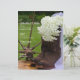 Personalize o menu casual, porém clássico, Rustic Hydrangea e Cowboy Boots Western Wedding com os detalhes da refeição que você servirá no almoço de chá de panela da fazenda rural ou do tema rancho, janto de recepção de casamentos ou poste o almoço de casamento adicionando a salada ou o primeiro curso, a entrada ou o segundo curso e a sobremesa ou o terceiro curso. Este charmoso carinhoso cardápio de chic country apresenta uma fotografia floral acesa de um par de botas de cowboy de couro castanho cheias de um buquê de flores brancas de hydrangea e um véu branco de brasa em madeira de celeiro com uma roda de vagão e um fundo natural verde-turvo.