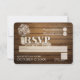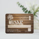 O cartão de resposta de design RSVP de Respiração e Lenha Rústica de Bebê para felicitar nossa escada de madeira Vintage com cartas LOVE convite de casamento com cheio de jarro do bafo e madeira escura.