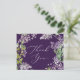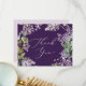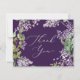 Este cartões de agradecimentos roxo rústico é perfeito para um casamento de primavera ou verão. A romântica e elegante design floral apresenta flores lilás roxas de aquarela com uma sensação de jardim boho country. Personalize a parte traseira do cartão com seus nomes e uma mensagem de obrigado. Como alternativa, deixe o vazio da seção modelo da mensagem do obrigado para escrever uma nota personalizada em cada cartão após a sua chegada. Essas cartas podem ser usadas para um casamento, chá de panela ou qualquer evento especial.