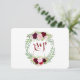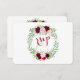 Convocação RSVP de Casamento Floral Russo Marsala. Este design rústico apresenta flores de aquarela lindíssimas em uma coroa, setas com buquê cardíaco e flores (como divisor) em fundo branco. No fundo há um belo fundo de burgundy. Use a ferramenta Personalizar para adicionar suas informações. Para mais, visite, por favor, a minha Coleção Floral de Wreath Burgundy Marsala.