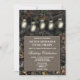 Rustic Mason Jar Hunting Camo Wedding Invances - recursos pendurados em frascos de mason com fundo de camo de caça na frente e atrás com uma caixa de texto castanha na frente.