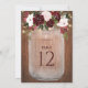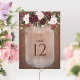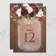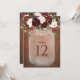 Estes cartões de mesa de tamanho maior são perfeitos para o casamento do seu boho country. O design apresenta um buquê de flores bordadeiras e borrifadas de aquarelas decoradas com lamparinas de fundo de madeira marrom rústica.