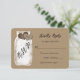 Cartão RSVP de Casamento Russo apresentando um jarro de pedreiro e dois corações de burlap com iniciais contra um fundo de papel kraft falso. Personalize facilmente esta bela placa RSVP rustica online.