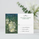 Celebrar um casamento único no verão com este cartão de resposta RSVP de casamento, com dois jarros de mason colocados ao ar livre na grama alta de um campo para pegar vagalumes debaixo de um céu noturno estrelado. A imagem no cartão de resposta é uma ilustração fotográfica que capta os pontos de luz criados pelos vaga-lumes para iluminar a cena, assim como as joias e libélulas que dividem o campo. Seu próprio texto de resposta impressão à direita enquanto a cena é repetida no reverso para realçar seu(s) nome(s) ou qualquer mensagem que você quiser. Disponível com produtos correspondentes.