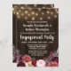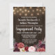 Rustic Peony Marsala Festa de noivado Invices - apresentam um fundo de madeira de celeiro rústico com luzes de cordas. O fundo apresenta várias flores, rosas e elementos florais elegantes de coloração aquosa, em tons de cinza, rosa, burgundy, vinho e Marsala. Consulte a coleção encontrada nesta página para esse item e também para ver os designs de produtos correspondentes ao cheio para concluir o evento.
