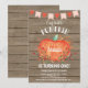 Convite de aniversário Rustic Pumpkin. Convite de aniversário de queda. Campo De Vintagem Da Madeira Rústica. Laranja e Rosa. 1rua no primeiro dia de convite. segundo 13º 5 4º 6 8º 10º 7, Qualquer Idade. Para mais personalização, clique no botão "Personalizar" e use nossa ferramenta de design para modificar este modelo.