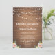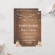 Convite de casamento moderno e russo com luzes de cordas sobre fundo de madeira e detalhes florais. Encontre papelaria e cartazes de casamento no nosso compro ou entre em contato conosco.