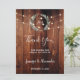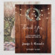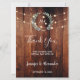 Rustic wood watercolor leaves, string of lights, Thank you, monogrammed photo wedding card.