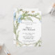 Design apresenta um elemento floral colorido impresso em tons de verde e azul-poeirento e borboletas azul-bebê em fundo canvas. Caligrafia ou tipo escrevendo com o trabalho de arte de design. Misturar e combinar peça de coleção. Excelente para as comemorações do casamento!