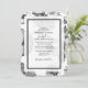 Este design apresenta flores pretas e brancas silvestres. O design floral preto-e-branco combina flores de vinheta com uma camada branca opaca, uma borda preta e um texto simples para criar um visual elegante sofisticado. O layout elegante arranjado de um lado e o lado negro oposto mostrando os nomes da noiva e do noivo se combinam para unir um design verdadeiramente único. O uso da tipografia de classe para o texto do texto elogia a design. Esta design é ideal para qualquer tema de casamento. O design perfeito para todas as estações. Também estão disponíveis itens de papelaria de casamento e outros formatos de convite de casamento.