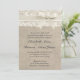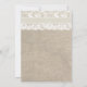 Este convite de casamento rústico e de renda é a combinação perfeita do tradicional e da moda. O fundo do burlap parece perfeito para um casamento temático rústico ou vintage e o sotaque de renda adiciona um toque romântico clássico. NOTA - Esta é uma imagem impressa de alta qualidade de burlap, lace, & ribbon; este convite não contém burlap, lace ou fita real.