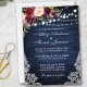 Luzes De Corda De Madeira Azul Rústica Lace Borgonha Aquarela Convite De Casamento Floral