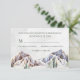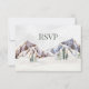Winter wedding RSVP cards with a rustic snow covered mountain forest scene. Customizable with your wedding details, available in many matching wedding products.