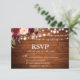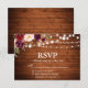 Rústica Wood Lights Watercolor Burgundy Floral Wedch RSVP Card