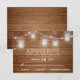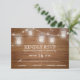 Este cartão RSVP de casamento rústico apresenta um fundo de madeira de celeiro rústico com frascos de pedras brilhantes e luzes de cordas.