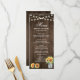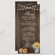Rustic Wood Sunflower String Lights Wedding Menu Card (1) Para mais personalização, clique no link "personalizar mais" e use nossa ferramenta de design para modificar este modelo. (2) Se precisar de ajuda ou itens correspondentes, entre em contato comigo.