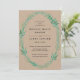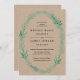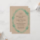 Convites de casamento lindos e tendenciosos com uma coroa verde e rústica varrendo o convite. Uma bela tipografia e todo texto preto com que esta design se destaca. Inspirados pelo verde e pela nossa fazenda favorita, estes convites são rústicos e clássicos com um toque chic, mas tradicional.