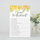 Quem conhece melhor a noiva? Um jogo de chá de panela divertido e divertido para adicionar ao seu evento. Ele apresenta ilustrações aquarelas da terra floral amarela com um padrão floral correspondente. Este jogo de perguntas florais amarelo é perfeito para primavera e chás de panela e festas de casamento de verão.