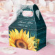 Coloque seus presentes de chá de panela/casamento nessas caixas de favores florais rústicas e teais inspiradas pelos girassóis.