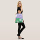 Este saco de lona foi desenhado com uma representação mista de uma cena exterior de grama verde, margaridas e um céu lavanda.