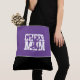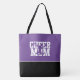 Anime as mães carregares com todos os seus equipamentos, nesta sacola de tote grande e bonita, mostrada em um bloco roxo e preto. Personalize este item ou comprar como está. Imagem licenciada
