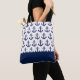 Esta bolsa de tote é mostrada com um design impressão de âncora marítima giro em Marinho & Branco. Tamanho médio mostrado. Tem pulseiras negras. Personalize este item ou comprar como está.