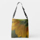 Vista traseira simples de um girassol amarelo vivo e florescente. Excelente acessório de verão para uma experiência sem mãos... talvez você precise tirar fotos ou comer um sorvete... Esta bolsa de tote é perfeita para todas as suas necessidades de viagem.