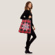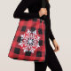 Este saco de tota de corpo cruzado é mostrado com uma xadrez de búfalo preto e vermelho com um grande design de floco de neve. Tamanho grande mostrado. Tem pulseiras negras. Personalize este item ou comprar como está. Imagem do stock vecteezy.com