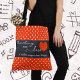 Um saco alegre com um padrão de bolinhas vermelho e branco com uma banda de quadro-negro ou design de quadro-negro com seus textos personalizados. A lousa e o coração são arquivos separados e você pode arrastar ou excluir ou copiar e colá-los também no verso. Bonita para um professor.