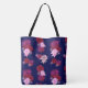 Este bolsa agradável agradará a todos. Base de marinhos com Dahlias desenhado pelo artista