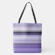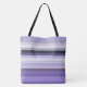Esta linda bolsa de tote é mostrada em uma impressão de listras roxas. Tamanho Grande Personalize este item ou comprar como está.