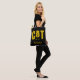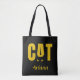 Este saco de tota na moda preto apresenta um design arrojado e atraente aos olhos com a palavra "CAT" visível em letras grandes e ouros. A letra 'A' é criativamente estilizada para se assemelhar ao rosto de um gato, completa com olhos piercing abaixo dele. Abaixo da palavra "CAT", o nome "Ariana" é escrito elegantemente numa letra cursiva, também em ouro. O nome 'Ariana' é perfeitamente personalizável, fazer este saco de tote exclusivo perfeito para amantes de gatos que querem adicionar um toque pessoal. É um acessório moderno e funcional para uso diário.