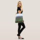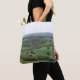 Esta bolsa de tote mostra uma fotografia da vista de Newlands Corner nas Colinas de Surrey da Inglaterra, olhando através da aldeia de Albury e do Weald até South Downs.