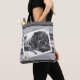 Crie sua própria bolsa de tote com sua foto favorita de gato. O fundo da bolsa é um bom padrão listrado preto e branco. Há um belo quadro branco com dois edelweiss à volta da fotografia do seu animal de estimação. Adicione algum texto se desejar, ou simplesmente remova-o. © ArianeC Ilustrações — Todos os direitos reservados